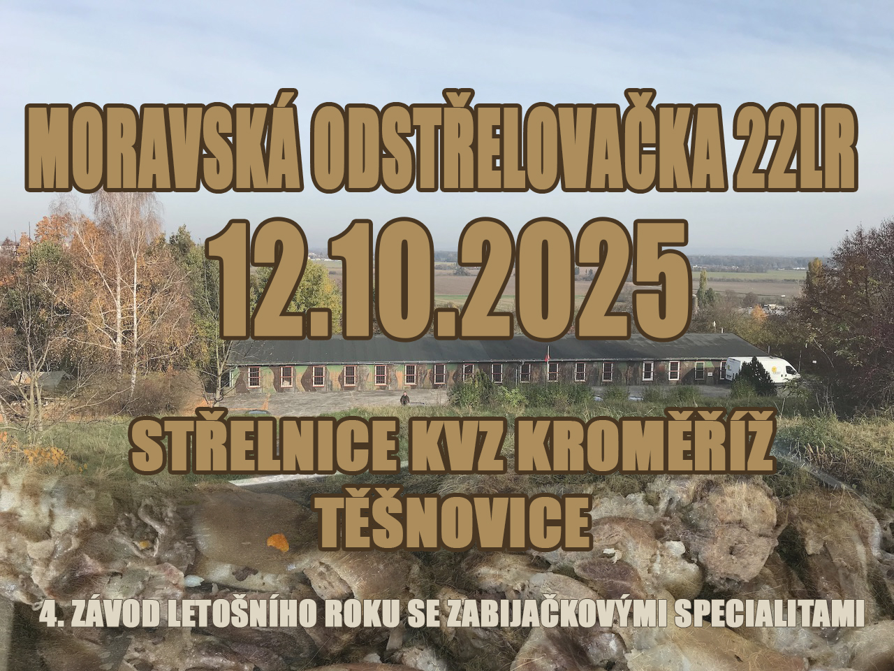 Závěrečný, čtvrtý závod ve střelbě z malé odstřelovačky se uskuteční v neděli 12. října 2025 na střelnici KVZ v Kroměříži - Těšnovicích. Protože je poslední v letošním roce, připravili jsme pro závodníky domácí zabíjačkové speciality, které se budou od rána chystat přímo v areálu.